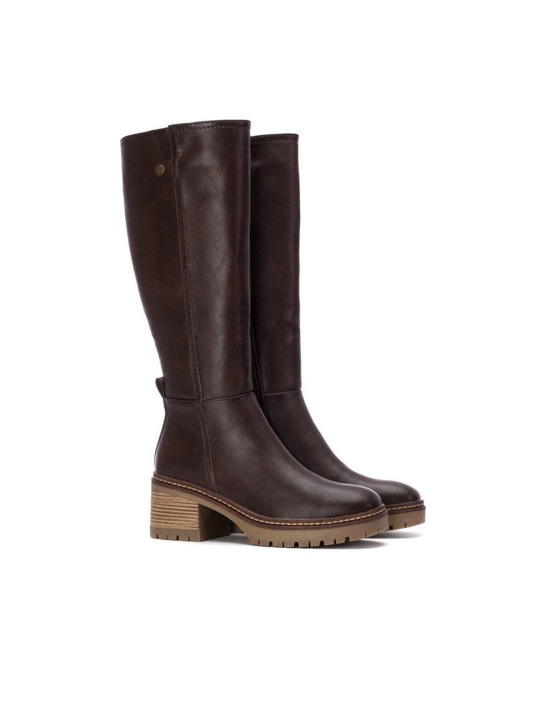 Bota de mujer, de la marca Xti. Fabricada en material que imita la piel, esta bota cuenta con un tacón ancho de 6 cm que ofrece comodidad y estabilidad al caminar. Su diseño elegante y moderno la convierte en una opción versátil para cualquier ocasión, aportando estilo sin sacrificar confort. Ideal para el día a día, esta bota también cuenta con suela antideslizante para mayor seguridad. Este modelo ha obtenido el certificado vegano por la organización mundial PETA (Organización de los derechos de los animales).