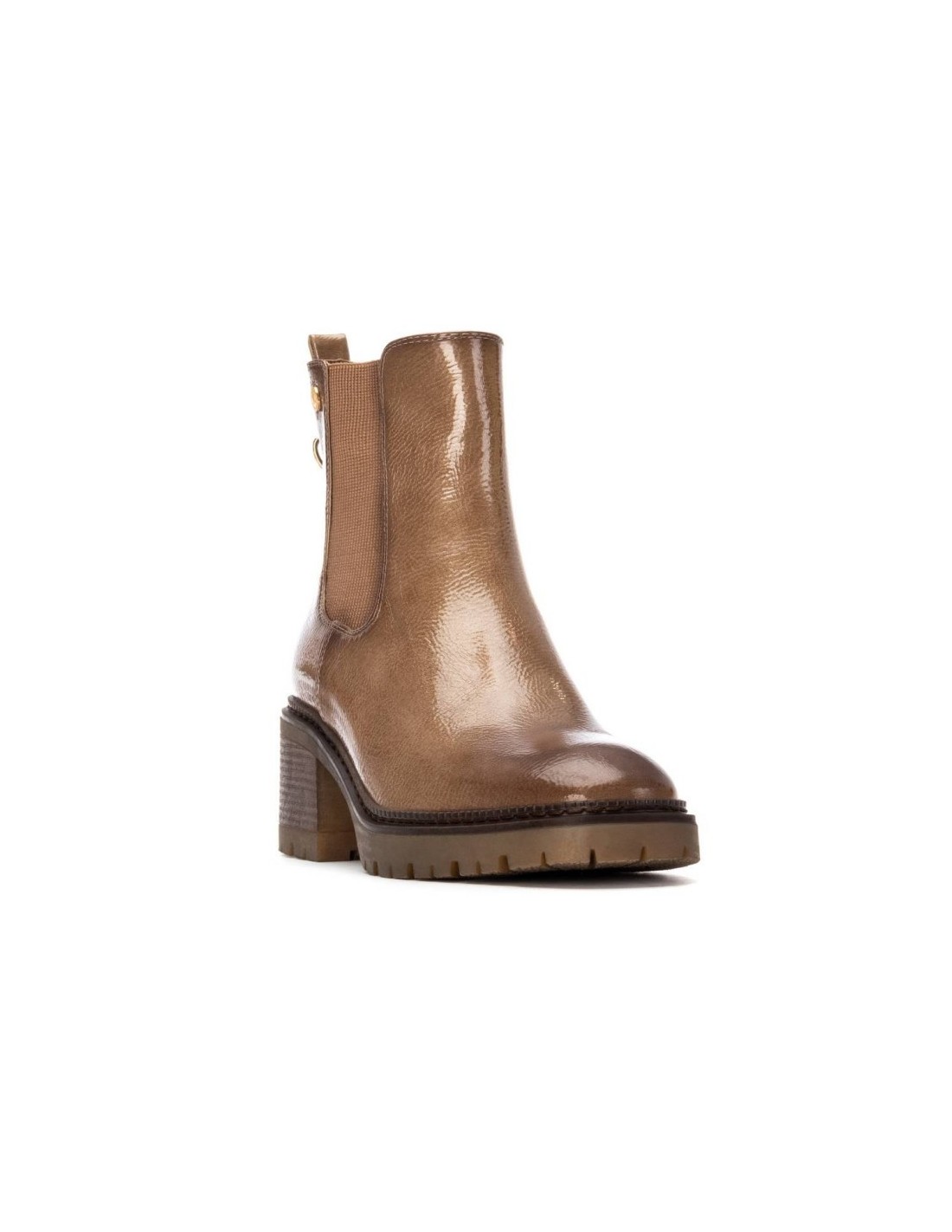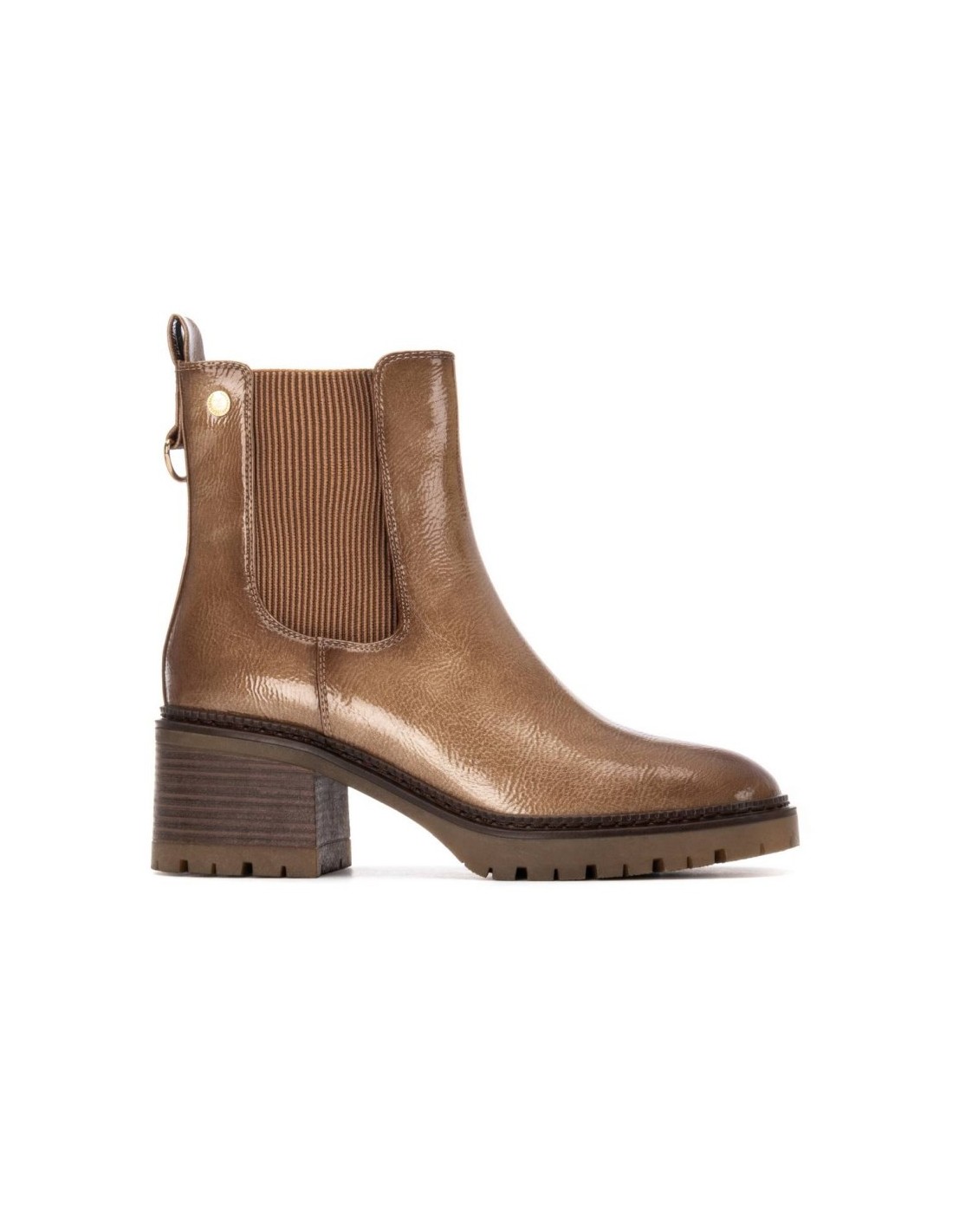 Botín de mujer, de la marca Xti. Fabricado en charol de alta calidad, con un diseño estilo Chelsea que combina elegancia y comodidad. Este modelo cuenta con un tacón ancho de 6 cm, ofreciendo una altura perfecta sin sacrificar confort. Su corte clásico y las gomas laterales hacen que sea fácil de poner y quitar, mientras que el acabado brillante del charol le da un toque sofisticado. Ideal para complementar cualquier look, desde los más casuales hasta los más formales. Además, su suela antideslizante asegura estabilidad y seguridad en cada paso. Plantilla extraíble. Este modelo ha obtenido el certificado vegano por la organización mundial PETA (Organización de los derechos de los animales).
