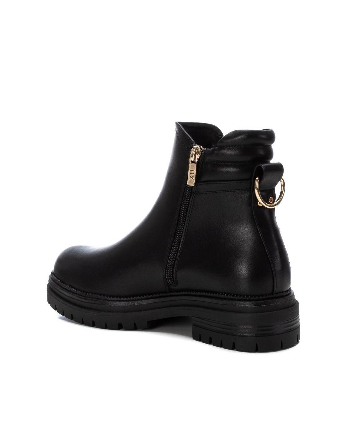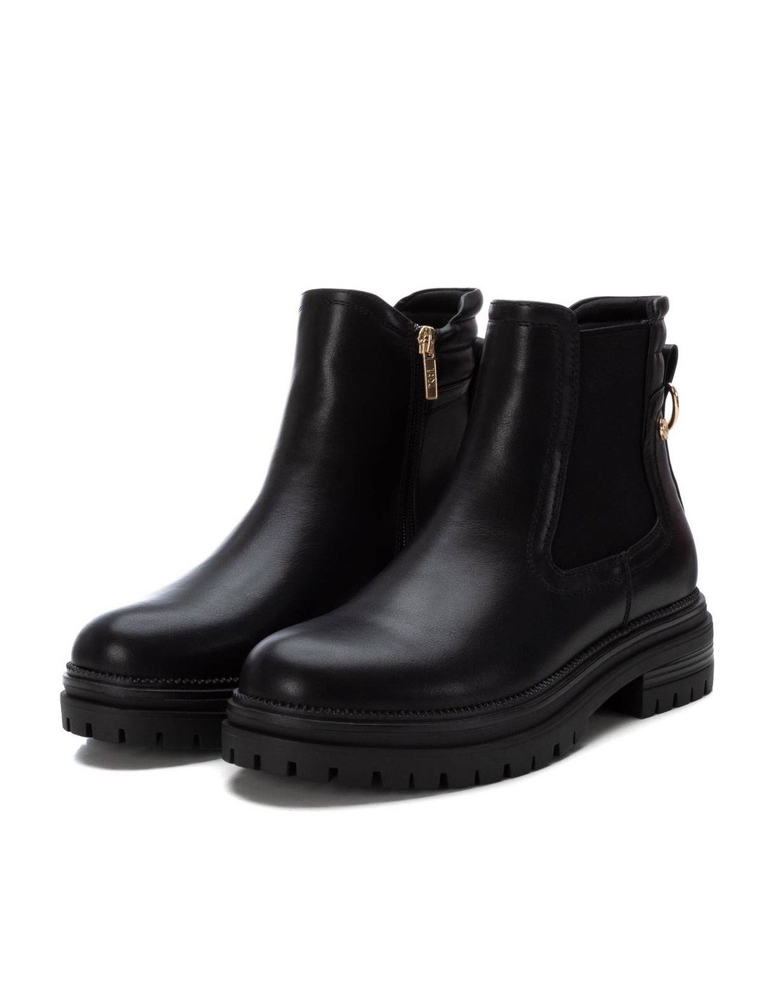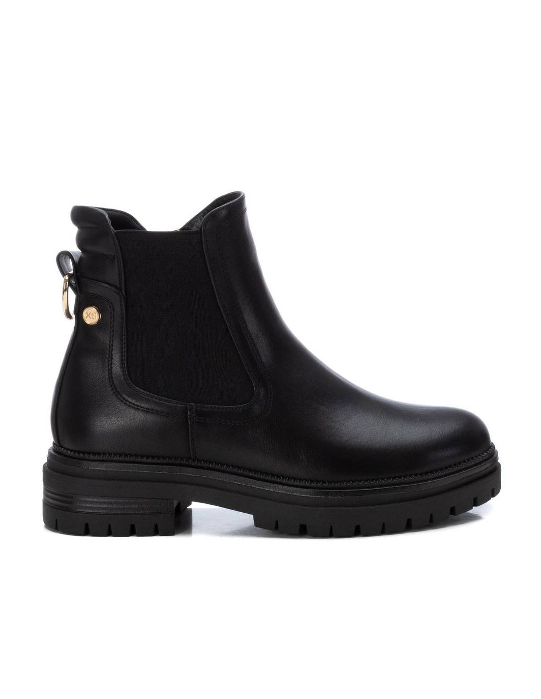 Botín de mujer, de la marca Xti. Fabricado en un material que imita la piel. Cierre mediante cremallera lateral. Modelo tipo Chelsea, con elásticos en el lateral. Tirador trasero para facilitar la puesta. Tacón ancho de 5 cm con suela de goma antideslizante. Este modelo ha obtenido el certificado vegano por la organización mundial PETA (Organización de los derechos de los animales).