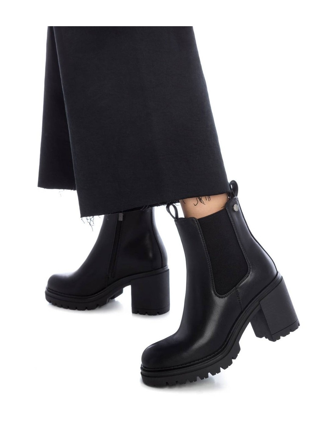 Botín de mujer, de la marca Xti. Fabricado en un material que imita la piel. Cierre lateral mediante cremallera y lateral elástico para mayor ajuste y comodidad. Suela gruesa, antideslizante y tacón de 7?cm. Este modelo ha obtenido el certificado vegano por la organización mundial PETA (Organización de los derechos de los animales)