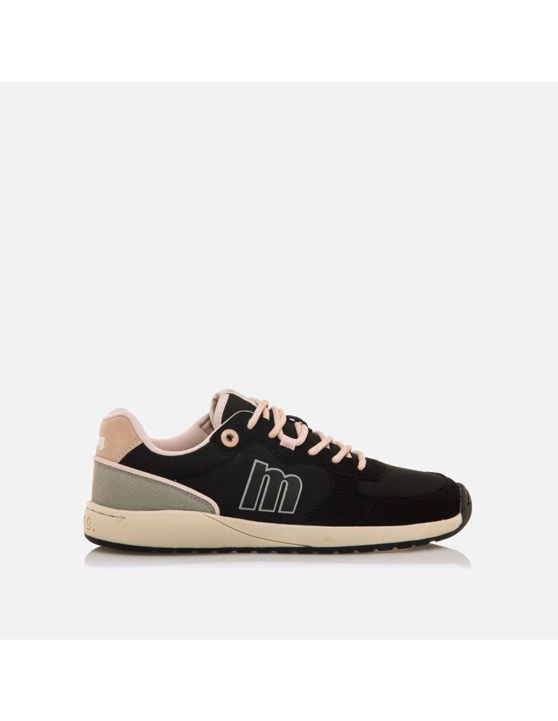 Zapatillas barefoot de color negro para mujer, modelo Free Apolo de Mustang. Diseño de estilo casual que combina paneles lisos con acabados tipo ante. El contraste de la suela en color beige con los detalles del talón gris y rosa claro junto a los cordones, añaden un toque moderno sin perder funcionalidad. Diseñadas y desarrolladas especialmente en colaboración con el Dr. Juanjo López, traumatólogo deportivo, para respetar el desarrollo natural del pie. Se trata de un calzado minimalista que gracias a su puntera ancha, suela totalmente plana (cero drop) y flexibilidad, mejora la anatomía del pie y favorece una mejor posición del mismo. Se vende con una plantilla de transición para hacer el cambio de calzado convencional a minimalista de manera progresiva. Con certificado VEGANO sellado por INESCOP, el cual garantiza que la naturaleza química principal del material no se corresponde con fibras de origen animal.