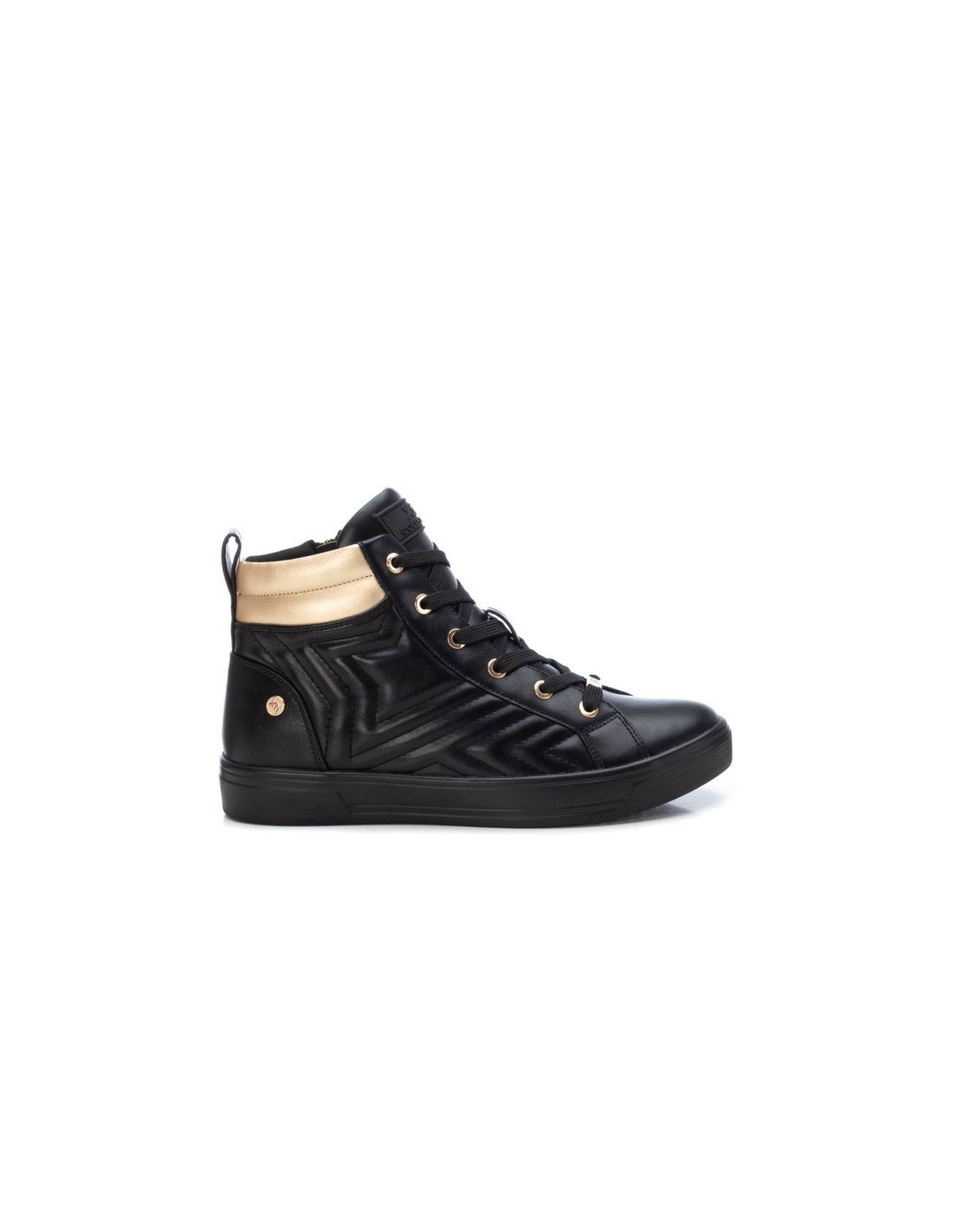 Botín deportivo de mujer, de la marca Xti. Fabricado en material que imita la piel con acolchado decorativo. Cierre mediante cremallera lateral y cordones para un buen ajuste. Tirador trasero para facilitar la puesta. Suela de goma antideslizante. Este modelo ha obtenido el certificado vegano por la organización mundial PETA (Organización de los derechos de los animales)