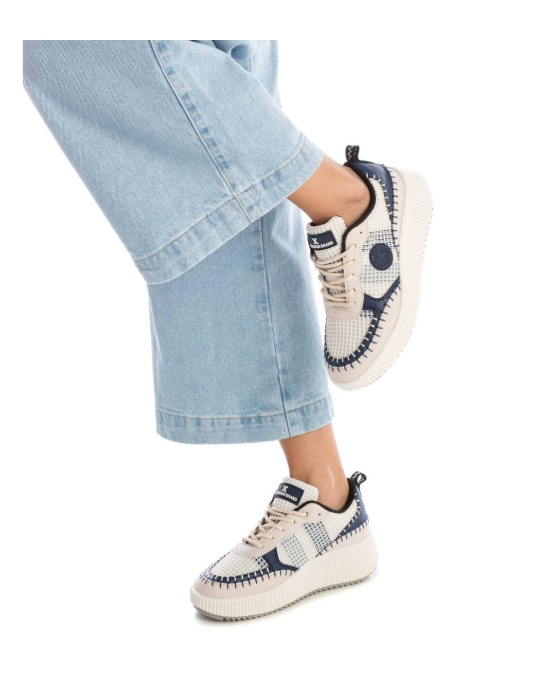 Zapatilla de mujer, de la marca Xti. Fabricada en diversos materiales textiles combinados con material que simula a la piel. Cordones regulables al tono. Zapatilla estilo casual para combinar con tus looks del día a día. Este modelo ha obtenido el certificado vegano por la organización mundial PETA (Organización de los derechos de los animales).