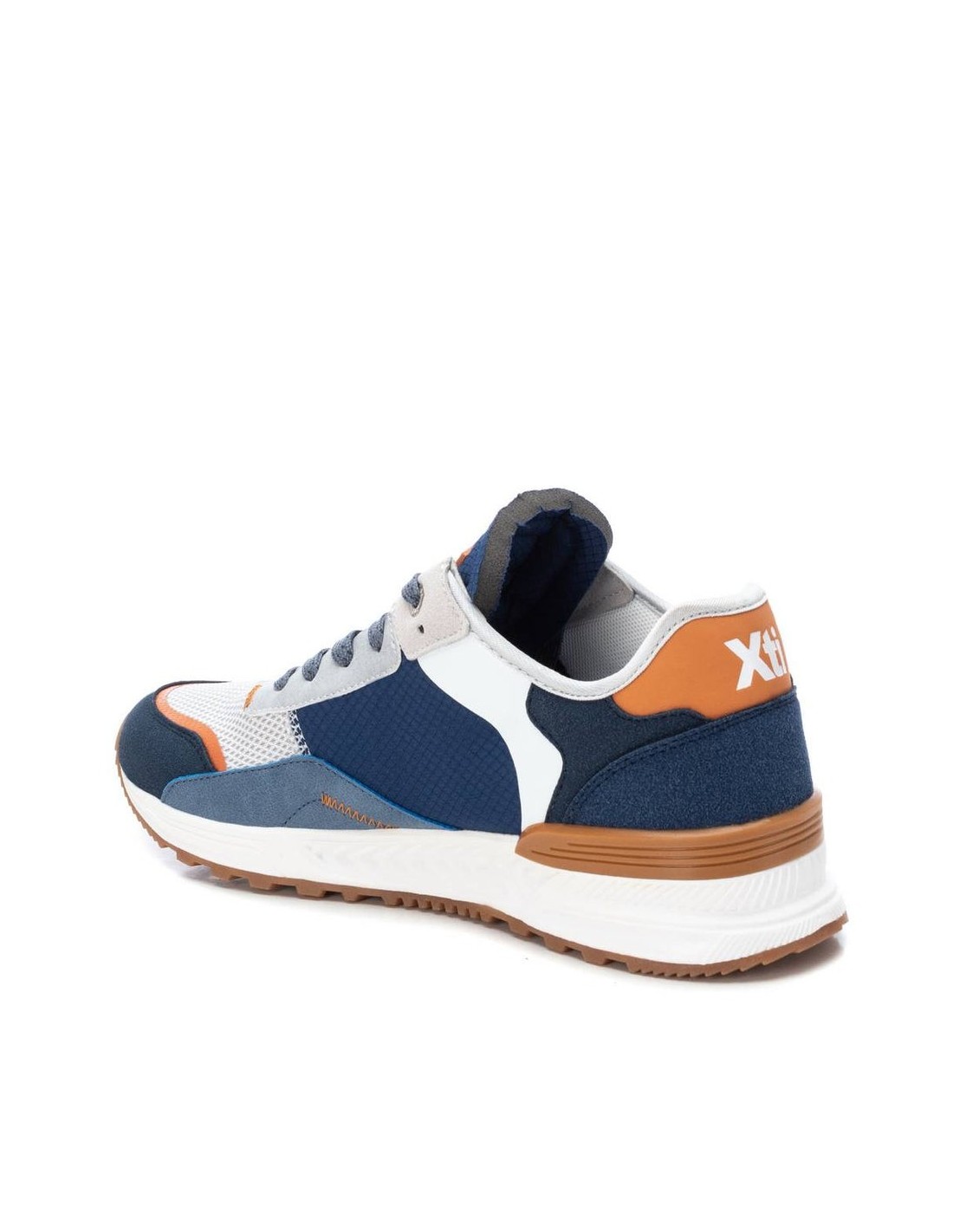 Zapatilla de hombre, de la marca Xti. Fabricada en textil combinado con material que imita la piel junto con detalles de goma impresa. Detalles de pespuntes en zig zag. Cierre mediante cordones. Suela de goma antideslizante. Este modelo ha obtenido el certificado vegano por la organización mundial PETA (Organización de los derechos de los animales).