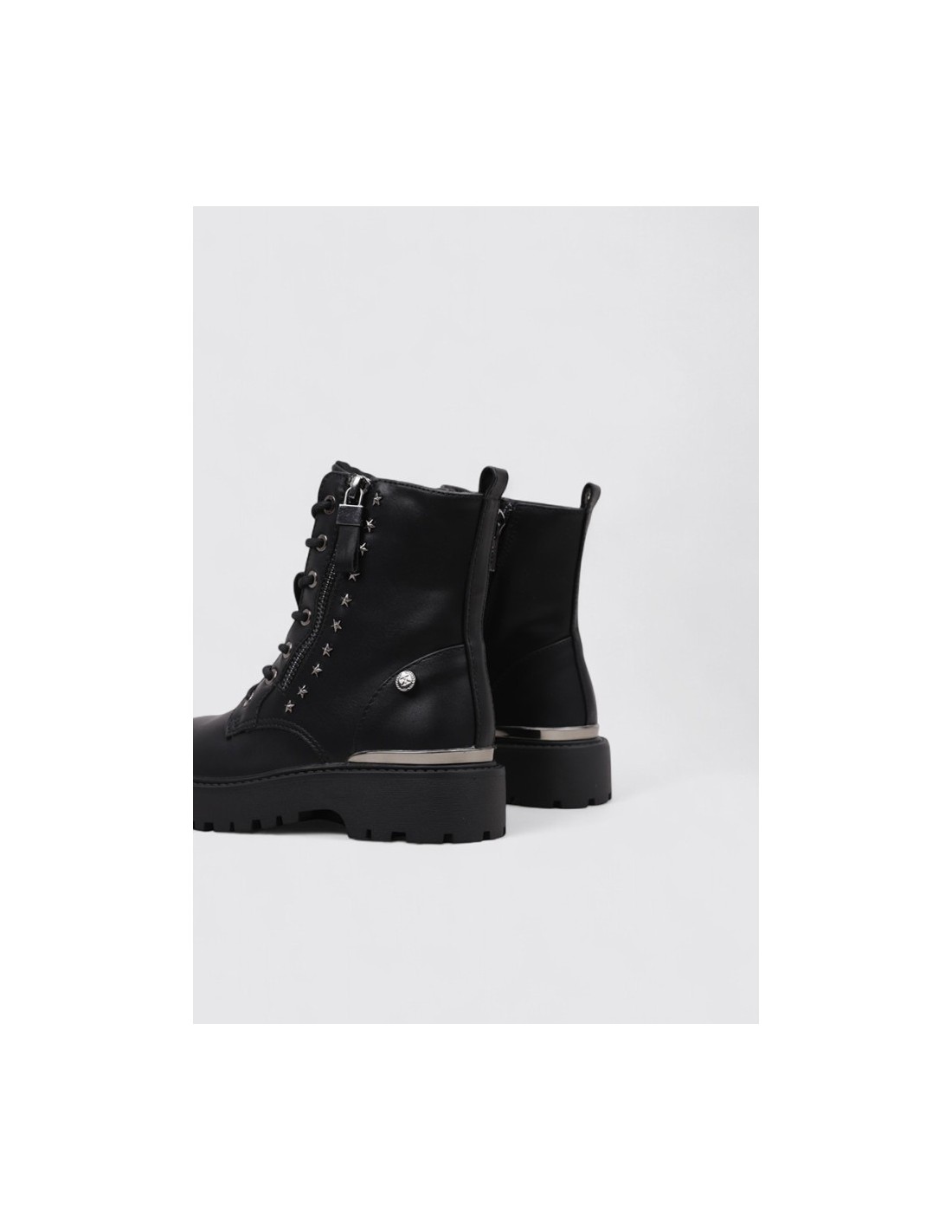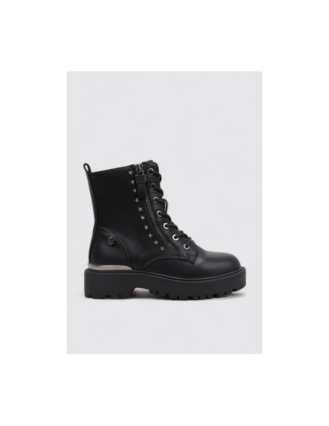 Las BOTAS PLANAS de estilo MILITAR de la marca X.T.I KIDS en color Negro están diseñadas para ofrecer un equilibrio entre funcionalidad y diseño. El modelo 151345 incorpora características propias de este tipo de calzado, aportando un acabado que resalta su identidad. Confeccionadas en otros materiales y pensadas para Niña, proporcionan sujeción y resistencia, adaptándose a diferentes combinaciones y ocasiones.