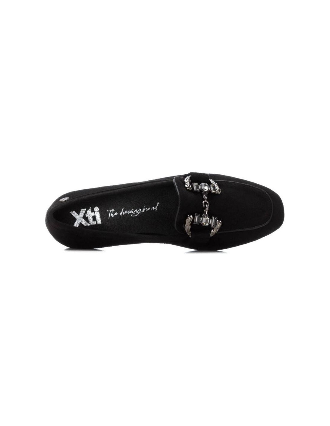 Los mocasines XTI 144250 en color negro son la definición de la sofisticación atemporal. Su diseño elegante se complementa con un distintivo detalle metálico en el empeine, ofreciendo un toque chic y moderno. Ideales para la mujer que busca comodidad sin renunciar al estilo, estos mocasines son perfectos para la oficina, eventos especiales o un look casual elevado. Fabricados con materiales suaves, garantizan un ajuste cómodo y duradero. Un básico versátil para tu armario.